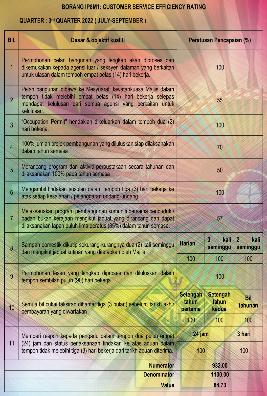 PENCAPAIAN PIAGAM PELANGGAN 2022