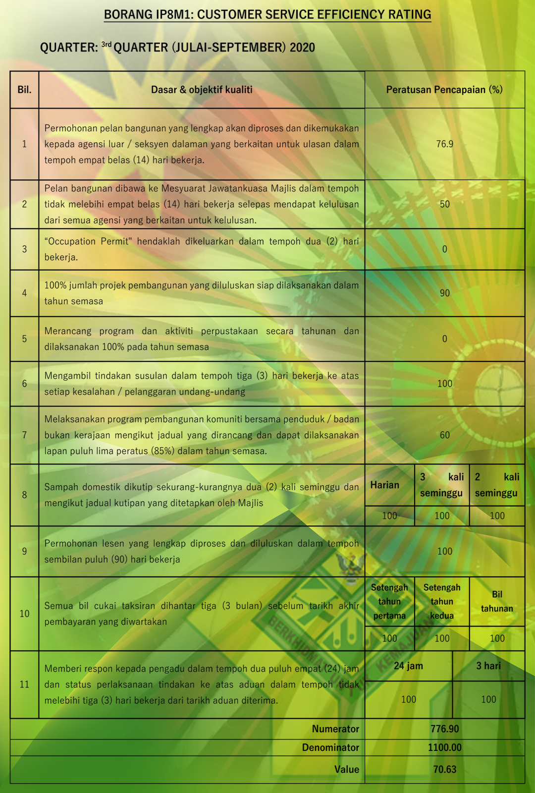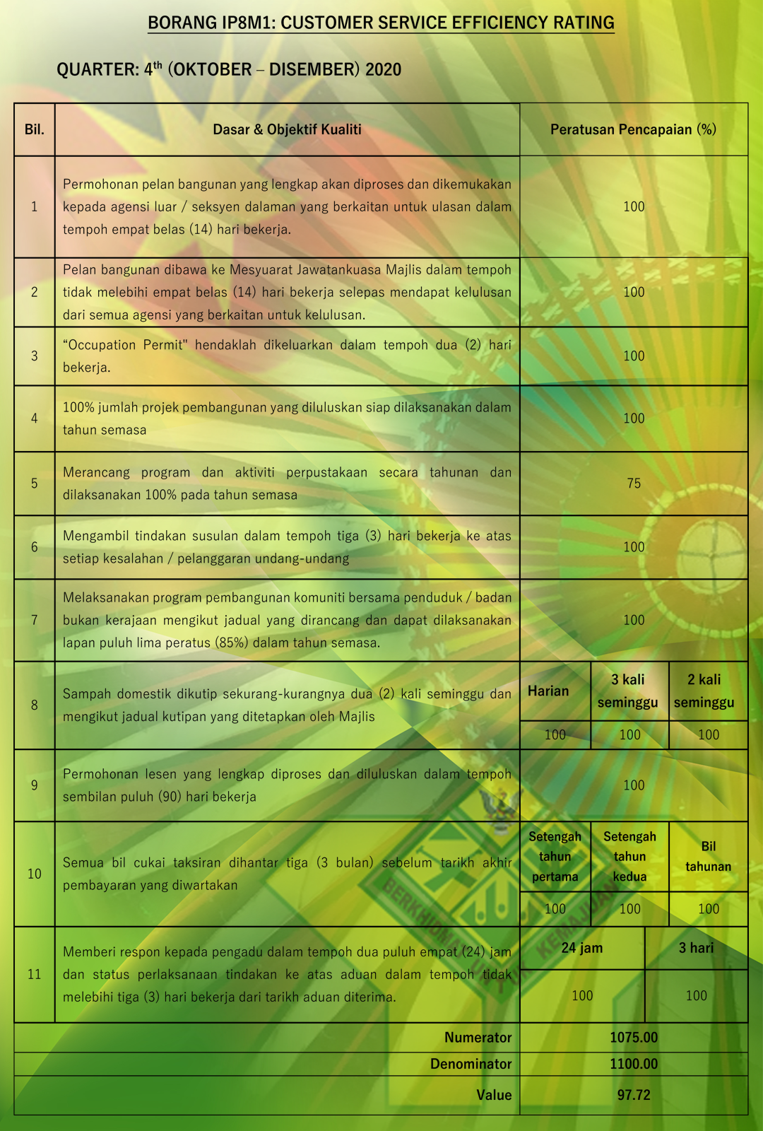 PENCAPAIAN PIAGAM PELANGGAN 2020