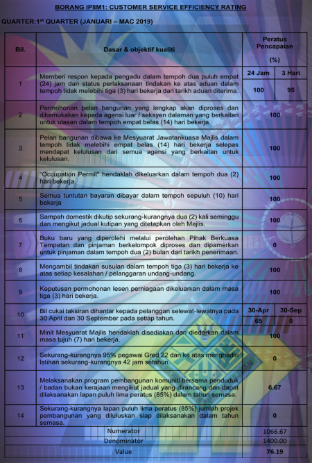 PENCAPAIAN PIAGAM PELANGGAN 2019